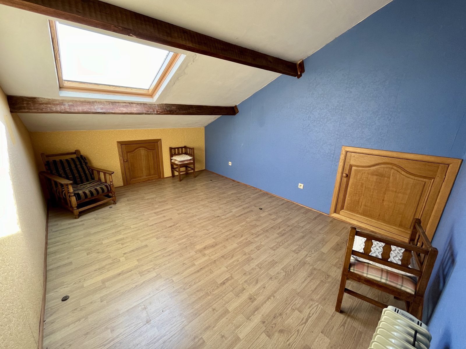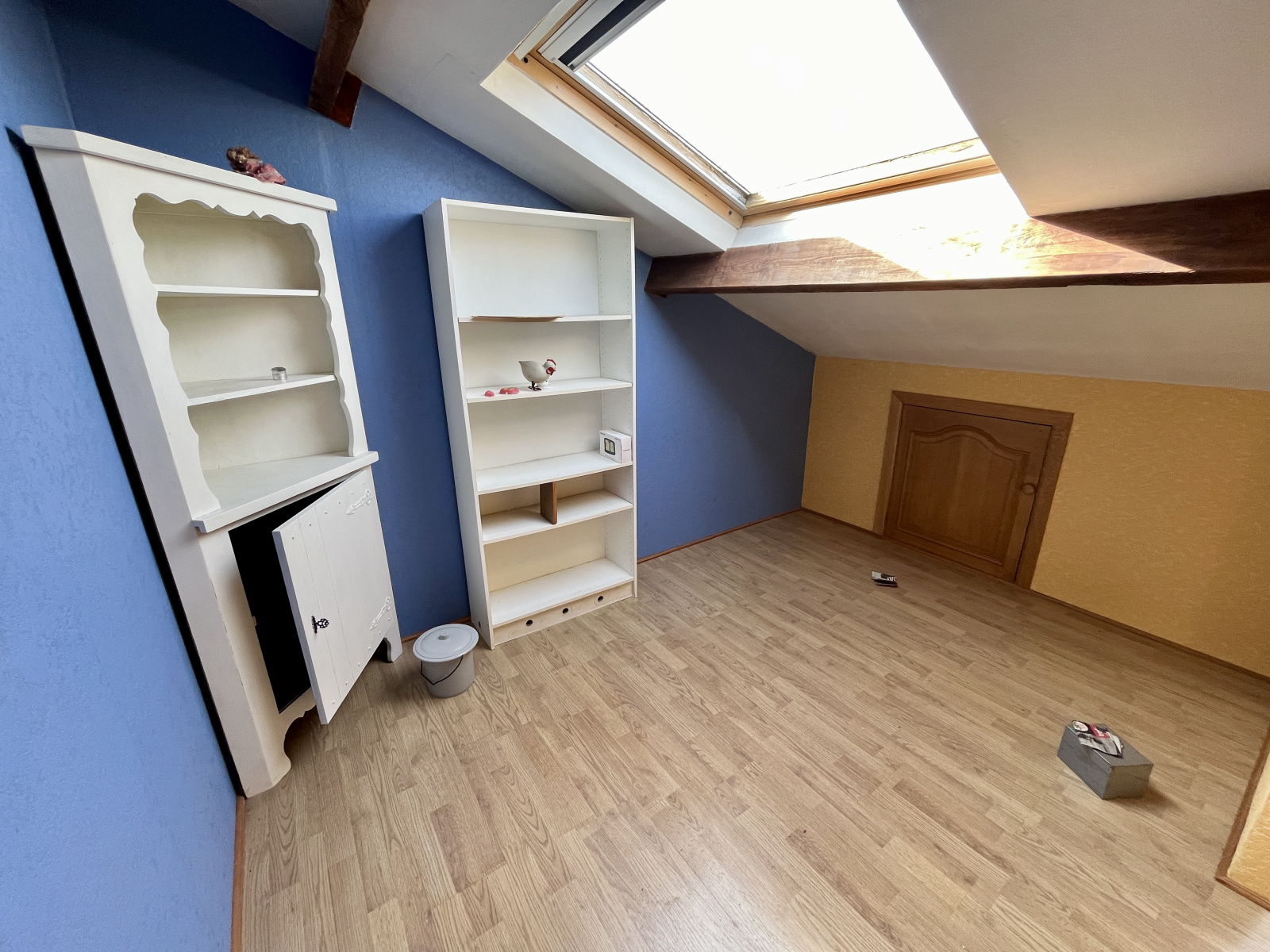 La maison se compose d’un salon/salle à manger avec véranda, une cuisine à remplacer, un hall de nuit, une salle de douches, un garage, une grande chambre, un espace bureau avec accès à l’étage. Au 1 er, un espace de dressing/bureau et une chambre. Possibilité d’une chambre supplémentaire dans l’espace de grenier ! À l’extérieur, un joli jardin au calme avec un abris de jardin